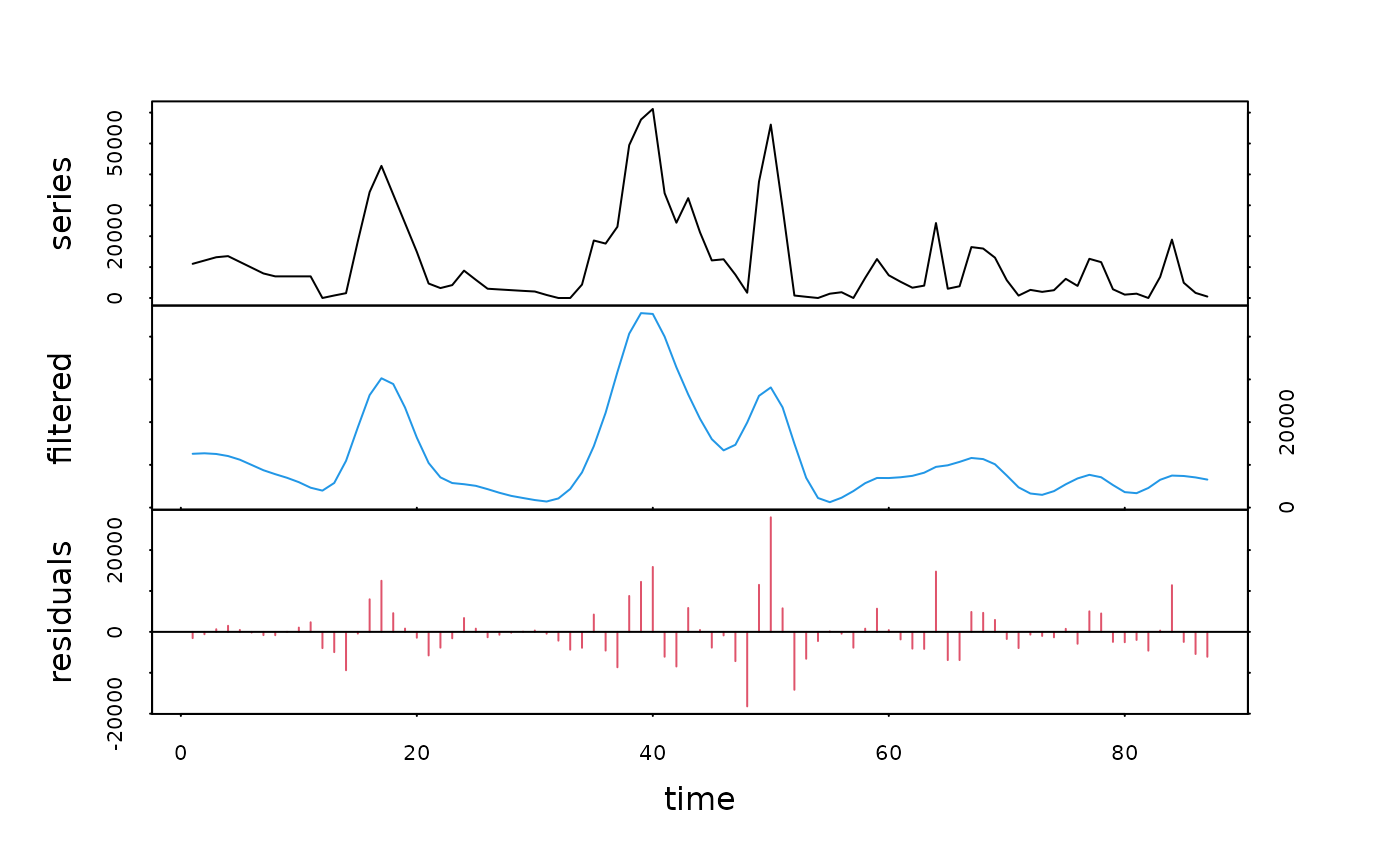 Ibanez, F. & M. Etienne, 1992. Le filtrage des séries chronologiques par l'analyse en composantes principales de processus (ACPP). J. Rech. Océanogr., 16:27-33.